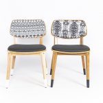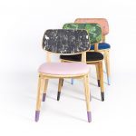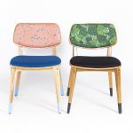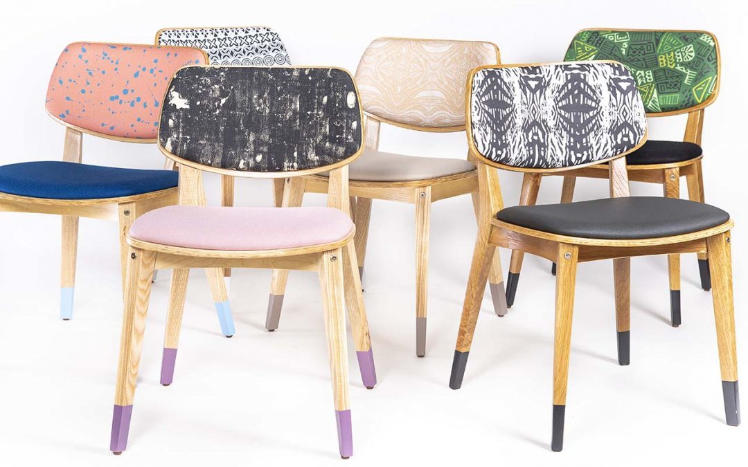 The chair legs are dipped in colours to compliment the curated use of textile patterns from Fabric Bank’s ZAR platform artists.