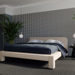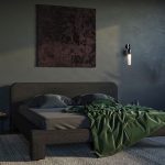 “The cave bedroom” with Faktura bed (materials: felted wool) by FAINA for those who appreciate their home and cosiness in it. The inhabitants of this room feel at home, save – as in their own, domesticated cave. “Caveness” to the bedroom adds a simple pattern of the headboard, clear stitches, and shape of the bed, which symbolizes its monolithic, unshakable character – it is a rock on the plateau of which you’ll lie down and fall asleep.