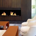 The spacious, light-filled living room was furnished with some of the company’s long-time best-sellers – the Groundpiece sofa, designed by Antonio Citterio, upholstered in soft shades of cream that contrast elegantly with the armrest-bookcase unit clad in tobacco colour cowhide.