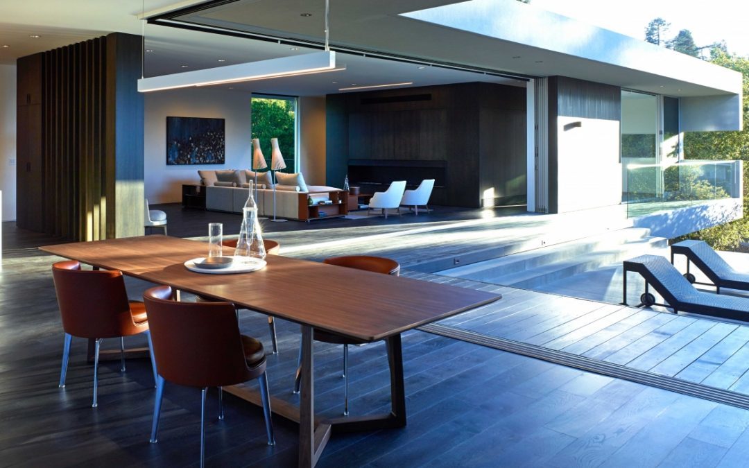 Set amid the lush greenery of the hills of Los Altos, this majestic home, with its spectacular modern architecture, blends exquisitely with the surrounding countryside.
