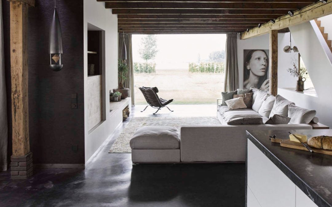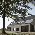 The building – a completely renovated farmhouse – is located in the low-lands outside Utrecht. Inspired by the colours of the surrounding landscape – the water, sky and fields of grain – architect Jeroen van Zwetselaar chose a palette of natural materials and hues. The previously existing outbuildings were demolished to make room for a design that employs sleek, wood-panelled spaces that reveal an interesting spatial interaction between interiors and exteriors and between the upper and lower floors.