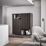 The Jeremy family includes compositions with drawers and drop-front doors, with various fittings, each of which is designed to be placed in different parts of the home, from the entry to the living room. All of the elements are finished on the back, making them suitable as room dividers.