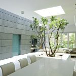 ‘A small tree with a skylight over it and a rectangular base was inspired by the traditional ‘Par’ (a platform or katta under a banyan tree). It provides perfect casual seating for the bar and dining area. The frontal and side setbacks are well embellished with elements of landscaping enhancing the space visually as it extends to the plot boundaries.’