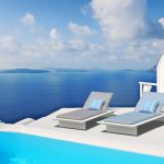 - Swimming pool overlooking the caldera in Oia, Santorini, Cyclades, Greece