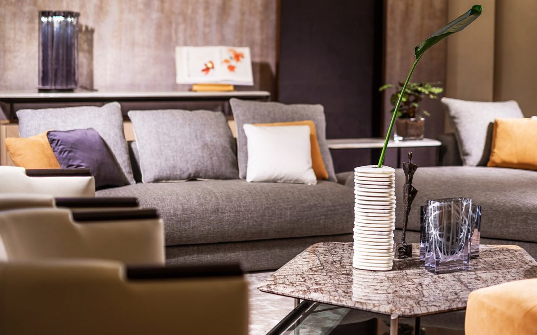 Giorgetti waits for you at the Shanghai Exhibition Center, where it showcases refined environments embraced by three curved boiserie panels, revealing a unique and totalising experience. Dining, living and night areas are enriched by wood, marble and textile details with their three-dimensional effects. Iconic products and new collections are perfectly mixed to reveal the versatility of each project: each piece has its own identity and it is the starting point for designing the space around.
