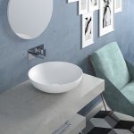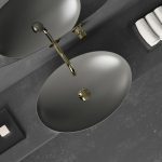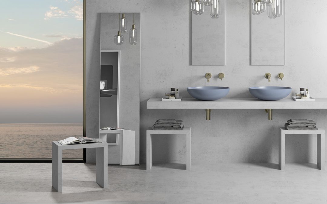 The new SLIDE washbasin, fashioned from VetroFreddo, is available in five models of different sizes, each of which comes in 17 different finishes: from matt versions (White, Cedro, Powder Pink, Sage Green, Avio, Tortora, Fumo and Black) to gloss (White and Ferrari Red), and from lux leaf (Silver Leaf, Gold Leaf and Copper Leaf) to captivating old metal variants ( aged Brass, Copper, Bronze and Dark Inox).