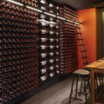 Downstairs a wine cellar with tasting area showcases the wines on beautiful original leather and steel wine racks – a new design by Haldane Martin for Kunjani Wines. A large painting, “Grace” by Krisjan Rossouw, brightens the space. The spiral staircase leading to the cellar is another notable design by Haldane Martin. A faceted Voronoi laser-cut pattern creates a beautiful tesselated light effect looking upwards from the cellar.