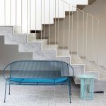 A full set of Cha Cha Occasional Tables pop in vibrant blues and greens. These minimalist Memphis-like plinths are stainless steel & come in an assortment of heights, diameters, colours and even terrazzo table tops! They’re the perfect addition to the patio or lounge as stand-alone features or combined to form colourful compositions.