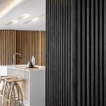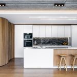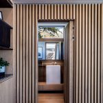 ‘The owners are Scandinavian, have lived all over the world and travel extensively. Their design intent was minimal, involving warm colours and natural materials with timber used for flooring, ceilings, privacy screens, wall panelling and all joinery. These timber elements were complemented with off-shutter concrete, natural stone cladding and Fibonacci tiles to create a palette of timeless, natural materials that age well.’