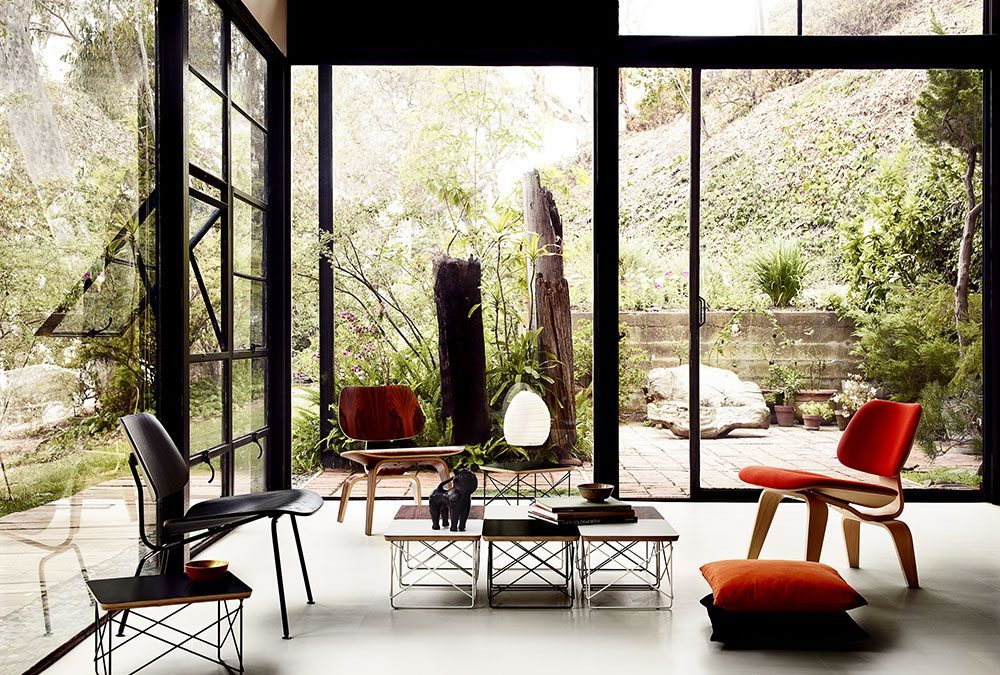 According to Herman Miller and Vitra, ‘Charles and Ray Eames would have appreciated this inventive use of the trees that surround their home. They valued them so much that they designed the site of the Eames House with the trees’ protection in mind, and even clad their living room wall in eucalyptus wood.’