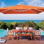 Adjustable outdoor shade reflects the latest technology and materials for high-end umbrellas.