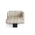 The feet and back structure are lacquered in a Nero Marquina marble, which provides a smooth, glossy effect and the upholstery fabric is dark red velvet. The manufacturers are introducing JAGGER in three possible co-ordinations, but it can be customised to individual specifications.