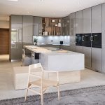 Erin Braithwaite of Fabri Portuguese imported kitchens says: ‘In terms of colours, we’ve noted an increase in bolder choices such as a dramatic anthracite or warm grey, both of which achieve the feeling that the kitchen is truly the heart of the home. Of course white remains a popular choice for a classically clean look and, with the correct balance between dignified matt and chic high gloss finishes, it can be elevated to something special. I believe that finishes that are in demand are those that offer contrast and allow for a sleek aesthetic that still presents a homely edge. For example, chic high gloss lacquered doors with warm timber accents.’