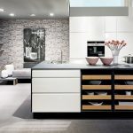 ‘bulthaup structured wood provides unique textures and sensations. For example, structured oak has the feel of a more raw material and can bring a very organic look to an otherwise sleek kitchen. Its rough-sawn front, reinterprets the typical, strikingly sleek grain and brings out the wood’s natural character. This new front, with the coarse structure of the original saw cut, is also coated with an exclusive natural wood lacquer, which not only offers the wood maximum protection, but is also virtually invisible. This product can deliver an exciting accent to very modern minimalist kitchen design. Structured wood can be coloured or left in a natural shade and is available with vertical or horizontal grain patterns.’