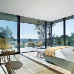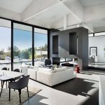 With very strong sustainable design credentials the house uses deep overhangs for shade, high thermal mass walls with heavily insulated enclosures and carefully designed natural ventilation for cooling the interior. Warmth is maintained by high performance double glazing capturing low winter sunshine, plus open fireplaces, solar panels and underfloor heating.