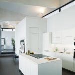 - Interior design is slick, light in tone and functionally appealing. The fireplace divider wall is a focal point in the living / dining / kitchen space.