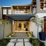 The linear form of the house makes the best use of its long northern exposure. This creates a sleek, minimalist aesthetic and an overall lightness, which was achieved through the use of delicate, thin structural concrete and steel elements. The home enjoys generous outdoor covered entertainment areas that frame diagonal views of the green belt and the L-shaped private garden surrounding it.
