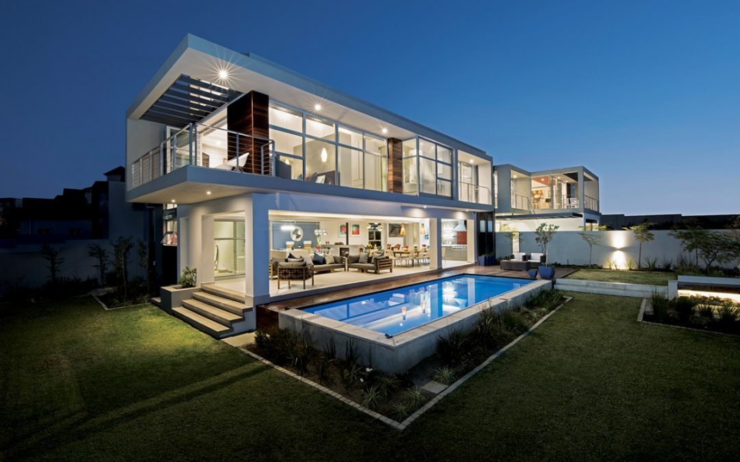 On a vacant stand of just over 900 square metres, architect Sergio Chinelli crafted this new build double-storey family home of 510 square metres. His brief was to design a contemporary South African home that would relate to its unique environment while reflecting the tastes and personality of