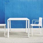 The KES Collection is completed with a table set: an archetypical and essential shape smoothed by the softness of the rounded sections.