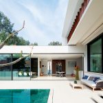 In planning this villa, the main design concept was to create an L-shape modern home around a pool and three individual garden areas. The structure was to house a family with children and a prerequisite was that it should include a large master suite.
