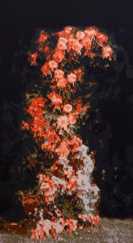 RdJ: Scrolling the web for thumbnail-sized images of bouquets, I rework vast amounts of images through a process of digital manipulation via numerous applications on my cellphone. This process allows me to distance the image from its original source on the web and break it down to basic elements such as form, colour and light. The strange distortion created by this process of choice/elimination is furthered by the process of enlargement from thumbnail to canvas.