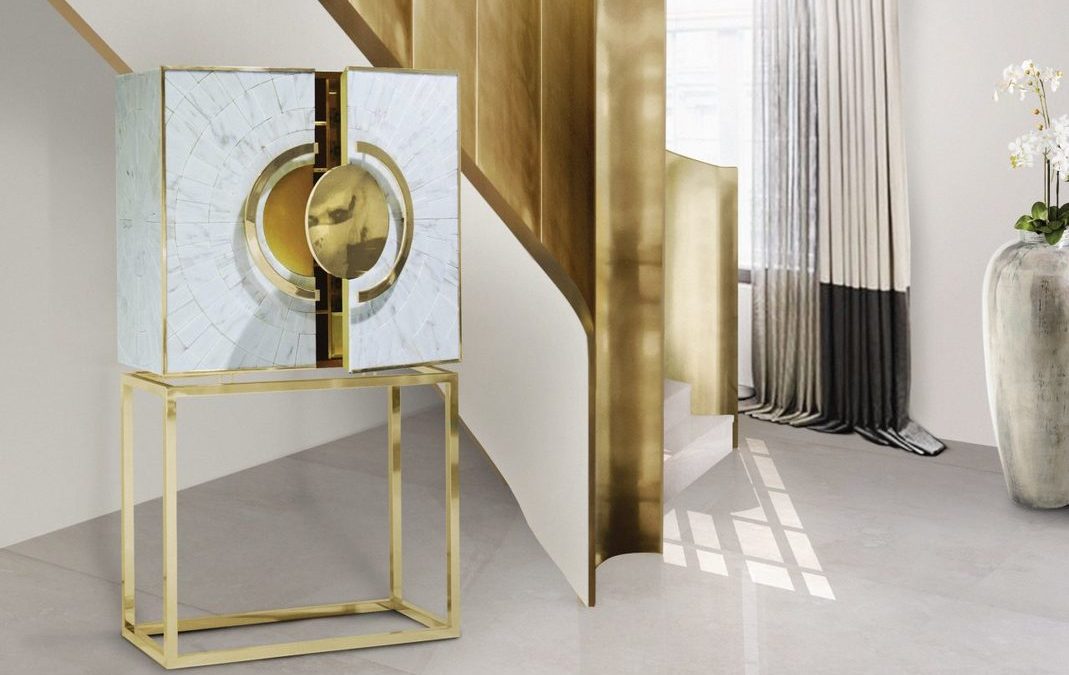 The Secret Cabinet is both sophisticated and timeless. Each cabinet is handcrafter with white marble and a gold sheet. The gilded brass base promotes its strength, elegance and stability.