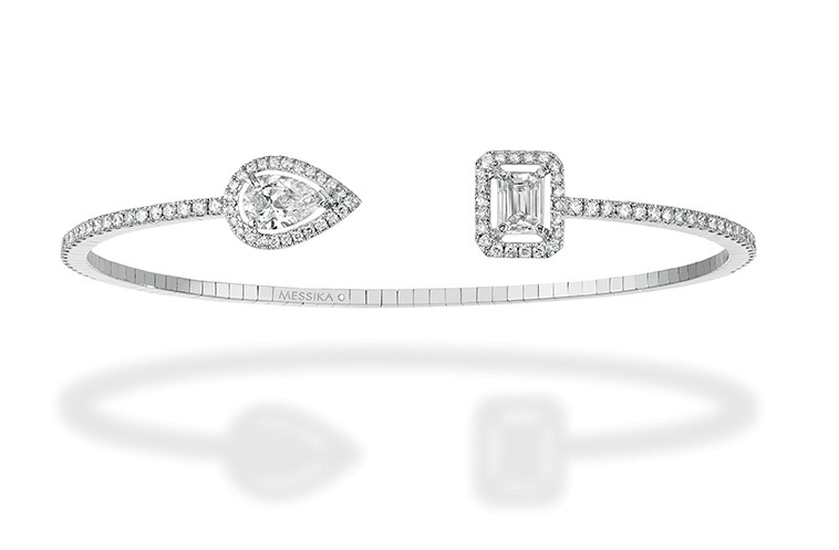 The My Twin Collection is a modern reinterpretation of the timeless You & Me ring. The sensual, sparkling pear cut responds to the stylised, hypnotic emerald cut so that the stones ‘call and respond’ to each other in an interplay of opposition and correlation, dancing a dazzling pas de deux. You & Me is normally composed of two round stones, but in My Twin Valérie Messika, the CEO and creator for the brand, dares to be ultra-creative by combining emerald and pear cuts. The result? Two shapes whose appearances contrast completely: the prestigious architectural emerald cut and the sparkling rounded pear cut. Two distinct characters which, when combined, complement and transcend each other – as the finest of couples should.