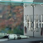 One of the key benefits of a mirror cabinet is the storage space for a perfectly organized washing area. Dual-sided mirrored doors, a mirrored rear wall, glass shelves, socket unit, a practical magnetic strip for small metal items or optional storage boxes all contribute to everyday comfort. For those who find the protruding carcass too dominant, a built-in variant can be selected for a more elegant overall design. The XViu mirror cabinet, with full mirroring on its sides, blends perfectly into the bathroom setting. Featuring icon control on the mirror’s surface for the first time, the high-end model is also equipped with ambient light and coloured light switching function.