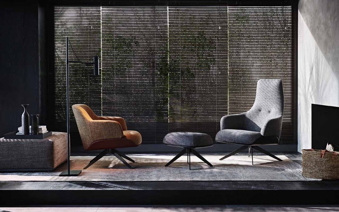 The Kensington armchair, designed by Rodolfo Dordoni, provides enveloping lines and calibrated proportions that one can simply sink into when wanting to chill and / or hang out. The all-in-one frame, complete with generous armrests, supports an ergonomic seat that guarantees comfort.
