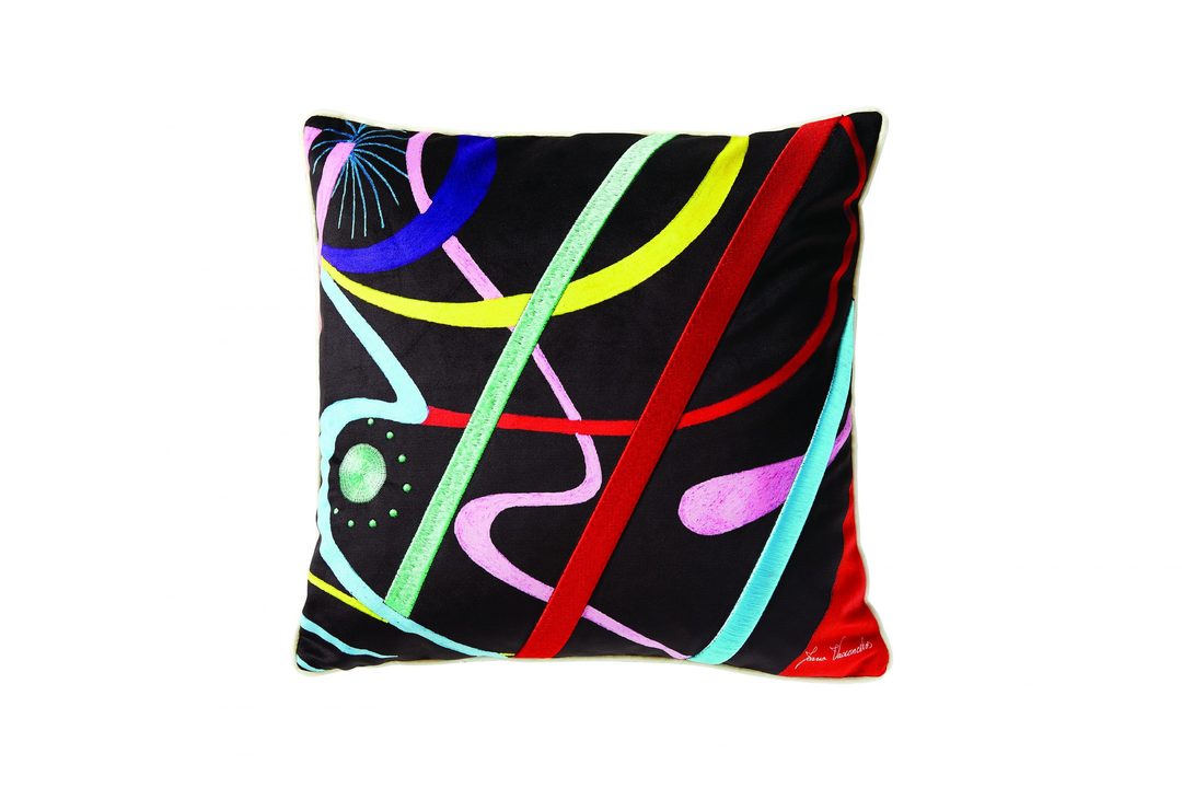 The collection of cushions includes patterns from the artist’s original designs, printed and embroidered, with white or black backgrounds. Each available in three sizes, for a total of six different designs, this collection reflects the fantasy and chromatic exuberance emblematic to Joana Vasconcelos’ work.