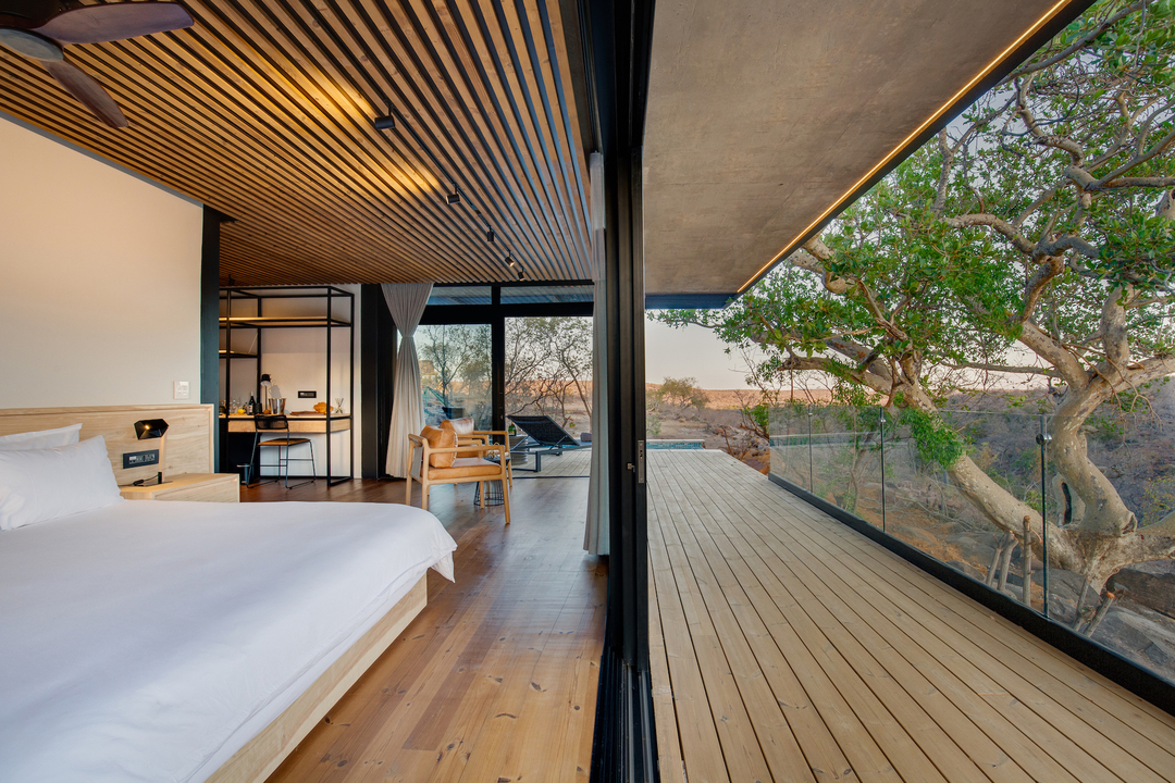 ‘Our first impressions were of the landscape, the vision that lay before us; the trees, the bushveld, the layers of the Waterberg. We felt that the key to the concept here would be to respect the context and most importantly create a design where the suites almost disappear into the landscape.’