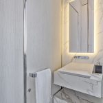 These unique characteristics are what also made him choose Neolith® for the bathroom where the walls, furnishings and even the shower have been cladded using the same Calacatta model in a Silk finish for a feeling of continuity and wellbeing.