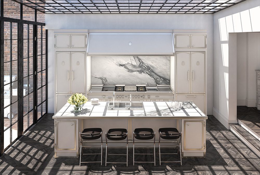 In the heart of London, surrounded by greenery and in a picturesque and spectacular setting, a former verandah, completely renovated and characterised by a structure made of iron and glass, welcomes the new project born from the collaboration between Officine Gullo and the designer, as well as the new Brand Ambassador, Alison Henry. A collaboration awarded with the World of Interiors Award Decorex 2018 for the design which is currently being installed into Alison’s own home.