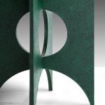 A group of objects based on the principle that 1 + 1 = 3. The dynamics of opposing forces; two intersecting flat planes collide to create new perspectives & alternative dimensions. Brutalist forms inspired by Louis Kahn, Carlo Scarpa, Richard Serra.