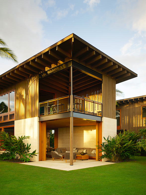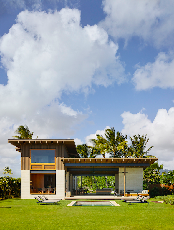 Set amidst mature palm trees, project Hale Nukumoi’s central living area is like a Swiss army knife – very simple with many ways to function. The complex is ready-made for family and friends. An indoor/outdoor lifestyle is exemplified by the home’s airy design: large sliding doors and walls, a custom two-storey rainscreen, and layered plantings balance connections to nature with privacy.