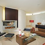 - The design of the fireplace against the curved wall presented quite a challenge. The lines of the curves were not to be compromised in any way, yet still had to house a fireplace, which was sculptural in its aesthetic, while providing storage for logs and concealing the chimney.