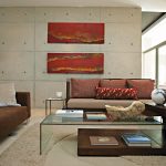 Says the interior designer: ‘The powerful architecture and sculptural aspect of the house provided the ideal back drop for furniture. A fusion of grey, browns, taupe and biscuit, laced with warm reds and oranges form the foundation of the décor. Texture features prominently by way of fabric and materials used. Sofas are soft and comfortable, without being overstuffed; they are thus complementary to the contemporary architecture.