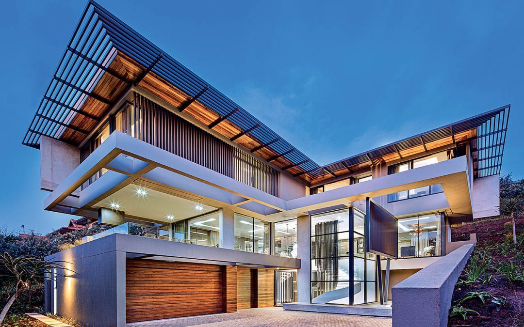 Located on the east coast of South Africa, this three-level structure is situated in the prestigious Zimbali Coastal Forest resort 45 minutes north of Durban, and is home to a young family of four. Construction commenced in January 2018 and was completed in July 2019.