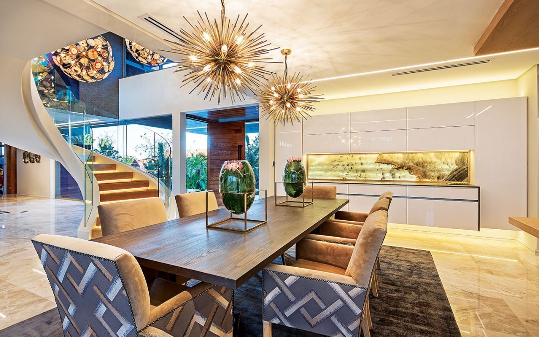 The interior design team recall: ‘We were engaged as designers in 2015 right from inception of the project and worked closely with the architects during what was a two-year build. We are process driven, always starting with a functional furniture layout so that services such as electrical and plumbing solutions are upfront and accurately positioned – especially when working with slabs where it is not possible to move points later. So, we selected the sculptural light fittings at the outset to ensure provisions were made for correct positioning and height; floor specifications, soft selections and furnishings then commenced.