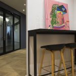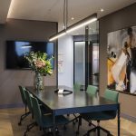 When Rosanne de Castro’s client, Rockwealth Capital, heard of the development they saw a vision of space and modernity in a new 8th-floor location. They required a shower, fully fitted kitchen, plenty of storage space, lounge / relaxation / entertainment, a board room that could double as a dining room, plus work areas for directors and staff. Quite a big ask for a 100sqm space. Rosanne de Castro from Interior Design Workroom kept in mind her clients’ profile; energetic and dynamic entrepreneurs and introduced this into the design signature.