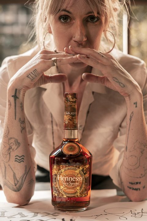 Faith XLVII is being welcomed into an interconnected global community. Building on the Maison’s commitment to forging ties with pioneers of urban culture, Faith XLVII has created a work of art that not only ushers in a new creative chapter in her own career, but also an evolution in Hennessy’s horizon. Henceforth, the House will expand its celebrations of urban culture to new frontiers, welcoming fresh voices across creative categories in addition to the visual arts.