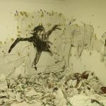 Another of her animations was made in a disused dance studio in Braamfontein, Johannesburg, in a building in which Cheadle and her collaborator, Cobi Labuschagne, had their studios. Because they were on friendly terms with the building’s cleaners, they were allowed into the dance studio at night for the duration of the project. Out of this clandestine arrangement grew the animation Swimmer (2005), which won the Royal College of Art’s Man Group Drawing Prize in 2005. Paper becomes water as the swimmer, depicted not only in paint but also textile ink and food colouring, moves with great ease through an uncertain element.
