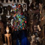In his series Who Let The Beings Out? Siwa Mgoboza sets his contemporary creation, a being from the imaginary future land of Africadia, against a backdrop of traditional African artefacts and antiques. At first glance, this character, a new representative of Africa in terms of art and vision, seems out of place against the objects of an older, more traditional Africa. However, a closer reading of the images brings out the tropes that unite the two worlds: masks, performance and ceremony play important roles in both.
