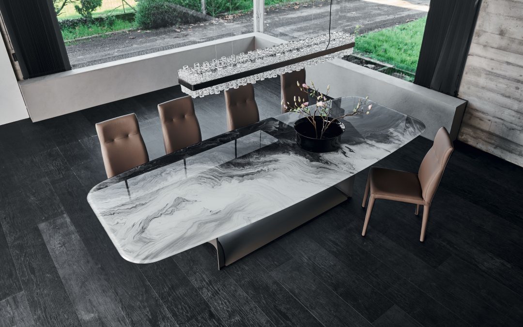 Table tops are also available in calacatta, alabastro, ardesio, gold calacatta, portoro, sahara noir, empador and Makalu. Top sizes: 2000mm, 2400mm and 3000mm.