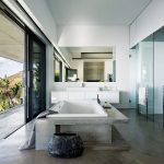 ‘This house was an opportunity to create a building that has a strong sculptural presence and also a very strong connection to its environment and views. We used a reduced palette of concrete greys and white. This muted colour selection allows the play of light and shadows to be more visible. It’s a dynamic composition of massive horizontal and vertical planes of concrete, glass and plastered surfaces. External light plays are exquisite, internal lighting in the evenings an enhancement beyond expectation.