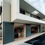 - The reflection of the simple geometric forms, which float over the pool has created a ship-like quality, appropriate to the coastal setting.