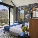 Each of the four suites has a unique interior treatment, outlook and layout. Custom wallpaper by Cara Saven creates cocoons of flowers or foliage out of each space. Freestanding bathtubs and showers with a view ensure that even the bathrooms offer a striking experience of the surroundings. The balconies leading out from each of the rooms allow guests to quite literally sit among the trees.