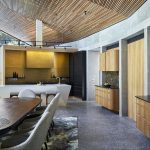 In the generously proportioned living spaces and outdoor areas, the feeling is one of space and light. While undeniably comfortable, the open-plan living areas are primarily a visual feast. Surface treatments such as timber roof panelling, metallic cladding on the kitchen island and terrazzo floors all engage the senses, while the furniture and objets d’art have been chosen to further stimulate with bold colour, interesting form and engaging textures. The entire interior serves to highlight and celebrate the beauty and dynamism of nature – and more specifically, Cape Town itself.