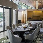 Echoing the same ‘village’ structure of Villa Maison Noir, with its five peaked roofs that symbolize the five elements, Villa Verte seamlessly combines private and open spaces. This thread continues strongly throughout the structure, with private rooms cantilevered into the trees making the space feel like a beautifully appointed treehouse, exposing its occupants to the panoramic views of the mountains surrounding them. The expansive interior living spaces allow guests room to breathe.