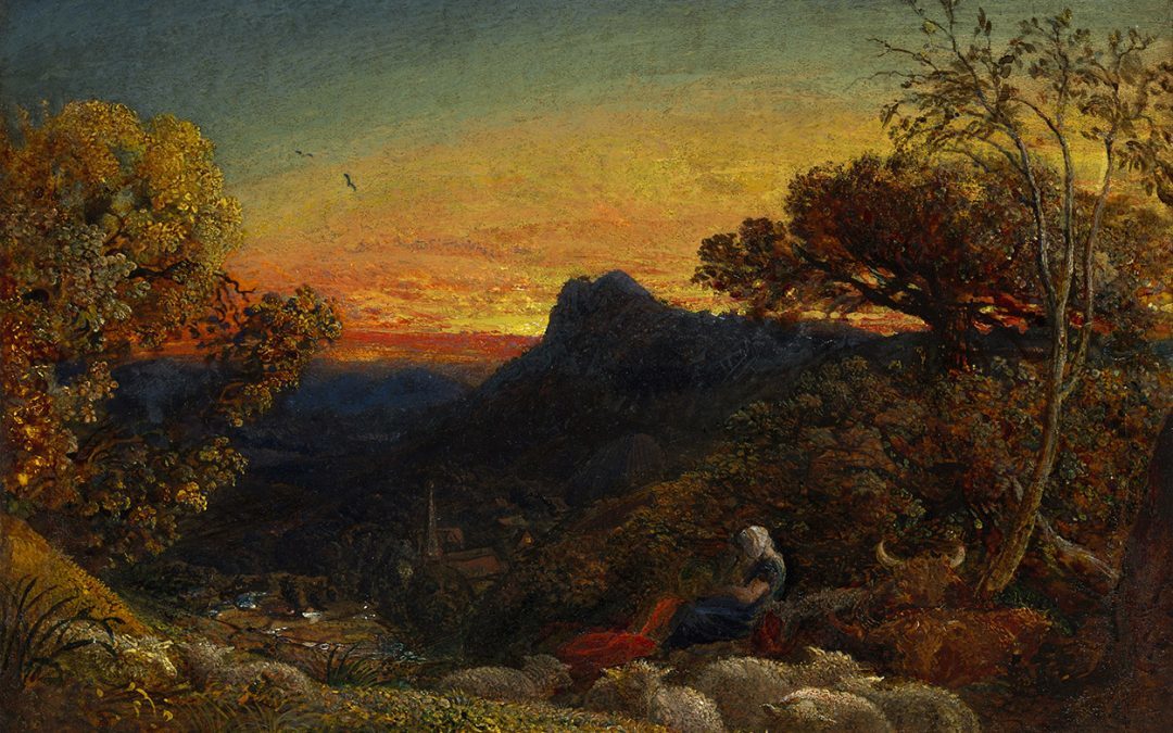 Landscape – Twilight by Samuel Palmer (1805-81) at Guy Peppiatt Fine Art: this rare oil painting by one of England’s greatest Romantic artists dates from his famed and highly sought-after Shoreham period between 1827 and 1835. There he produced his boldest, most visionary work, romanticising the natural world. Palmer led an artistic group called The Ancients, united in their love of William Blake and an idealised view of the past. The asking price is £1.95 million. See cover image